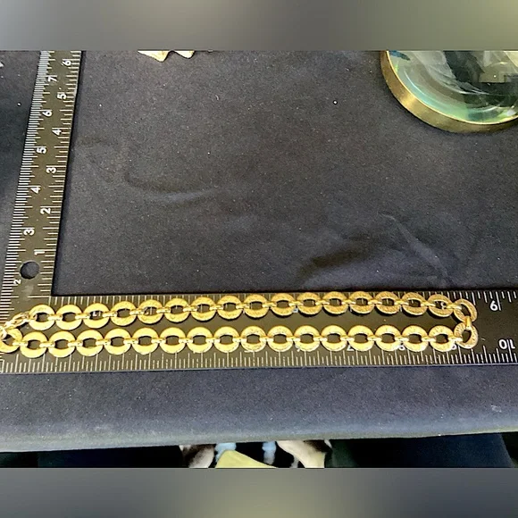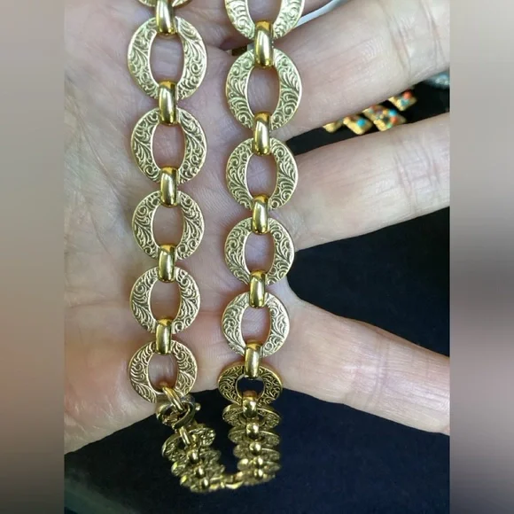 Sale is for gold chain only. The jeweled enhancer is sold separately.Vintage from the 1980’s.Gold links are delicately etched. Signature cartouche hangs from clasp.in overall...