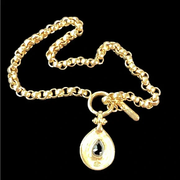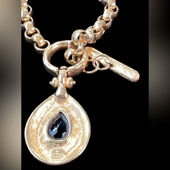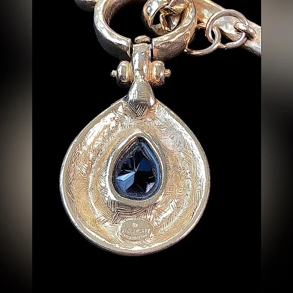 In very good vintage condition.Vintage 1980’s Givenchy Gold tone heavy link necklace with large toggle closure, black teardrop pendant surrounded with Givenchy symbols, pendant...
