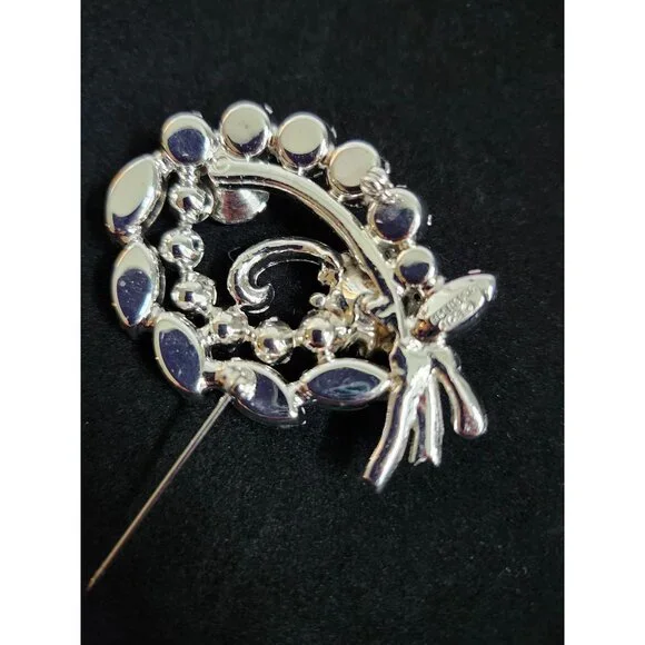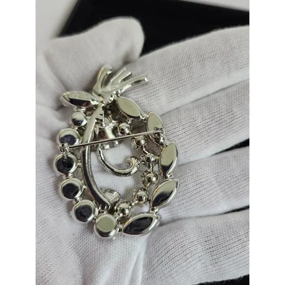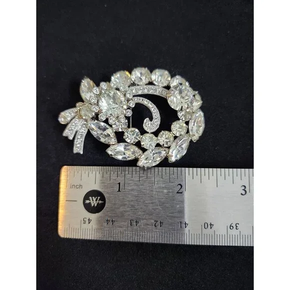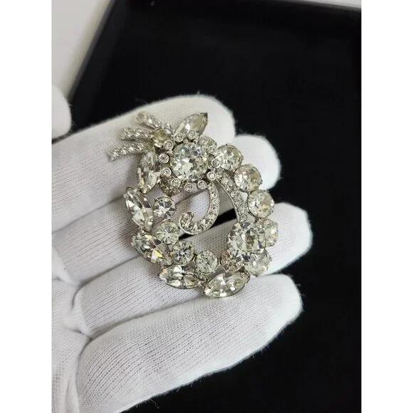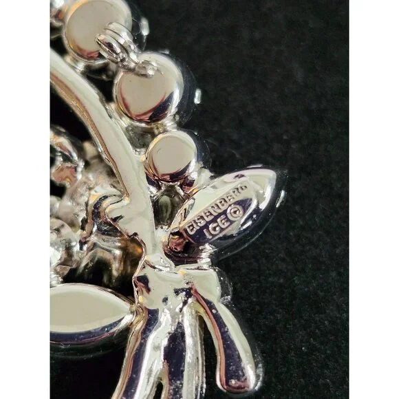 Vintage Eisenberg Ice Sparkling Rhinestone Brooch Oval Floral Design Silver Tone