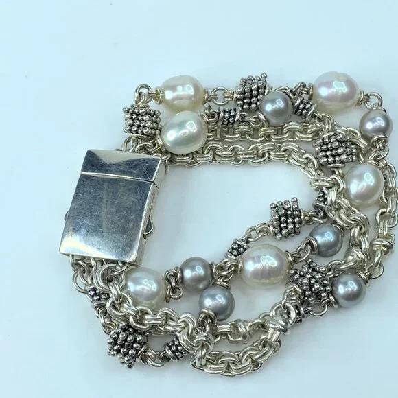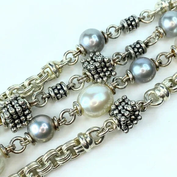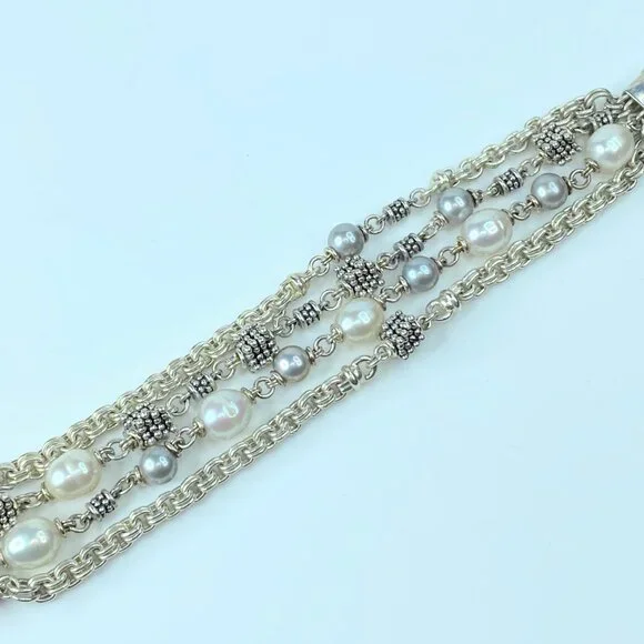 Michael Dawkins Sterling Silver/Pearl Multi Strand bracelet 7.5" 73.9g JR8739