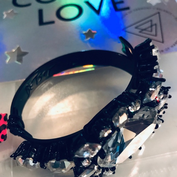 Black enamel bracelet with stunning sparkly reflective rhinestones statement piece prom dance club dinner date gala concert music events rave party costume accessories unicorn mermaid bunny playboy playmate dancer burlesque cabaret burning man beachVintage Crystal rhinestone embedded bow dangle earrings by Betsey Johnson tea party princess valentine day gift present new with tags wedding bridal prom dance date night glam girlfriend birthday party dress costume jewelry cocktail