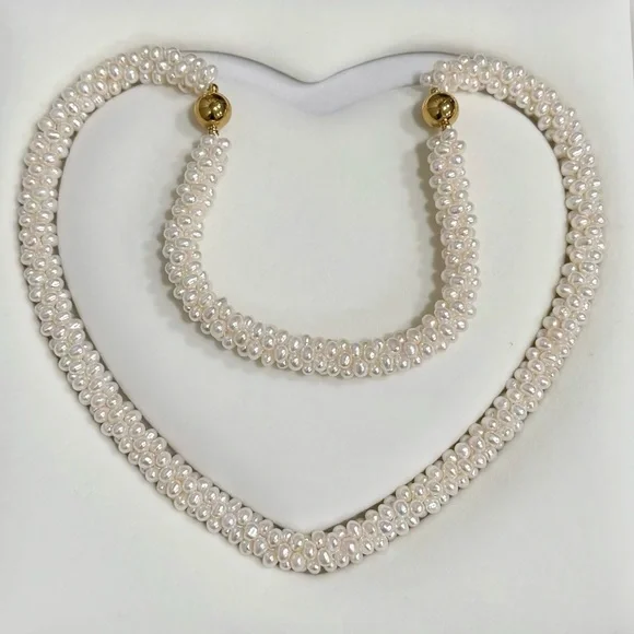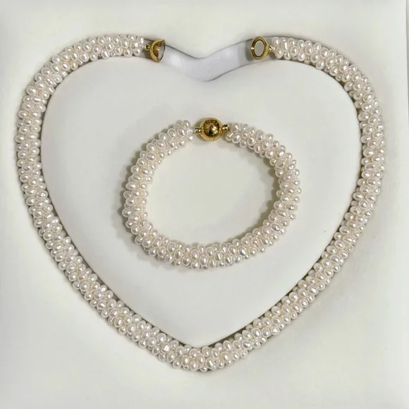 This set includes a necklace and a bracelet, both made from high-quality natural freshwater small pearls with a strong gem-quality luster. The necklace and bracelet can be joined...