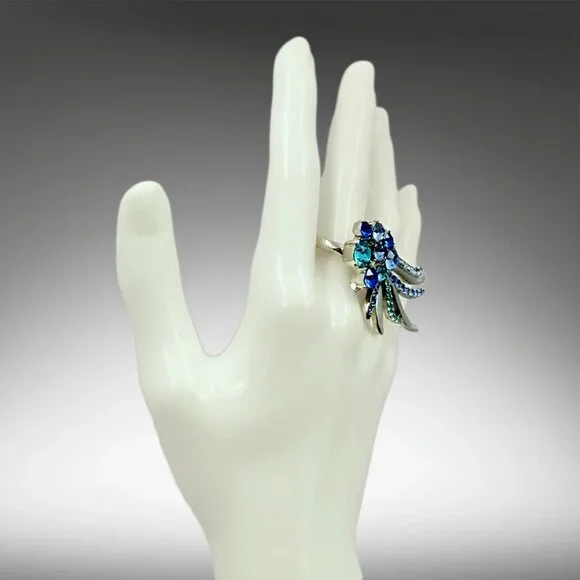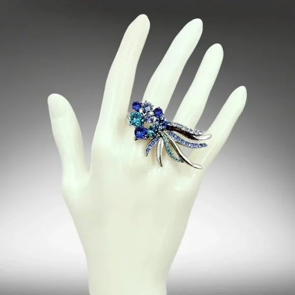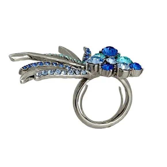 Oscar de la Renta Blue Comet Ring with Pavé Trails in Silvertone & Austrian Crystal Make a bold statement with the Oscar de la Renta Blue Comet Ring, a celestial-inspired...