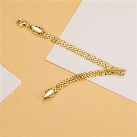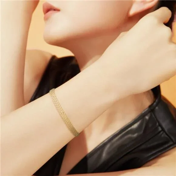 *【Sparkling Mesh Chain Design】Featuring a lobster clasp and a 5.6mm mesh link gold chain bracelet for women with precision diamond cut, these 14k gold рlаtеd bracelets for women exude timeless elegance. Whether worn alone for a chic statement or layered with other dainty gold bracelet stack, the womens gold bracelet are a must-have accessory, making it a staple for every woman´s collection.*【Versatile Wear】The gold bracelets’ classic yet modern design allows it to blend with various styles, from casual chic to elegant evening wear. The unisex appeal of the gold bracelets for mens bracelet makes it a fashionable choice, ensuring it becomes a staple in your gold jewelry rotation. Our gold bracelets will remain a beloved piece for years to come, suitable for all seasons and trends.DS-1149