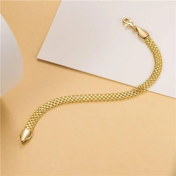 14K Gold Bracelets for Women Mesh Link Chain Bracelet 5.6mm Width Gold Bracelets
