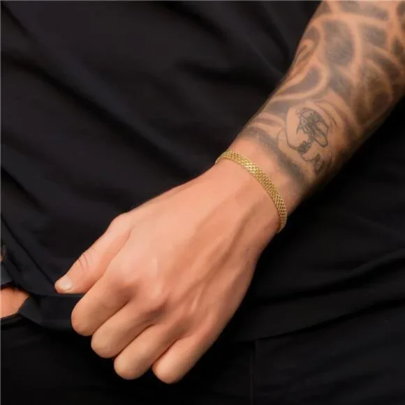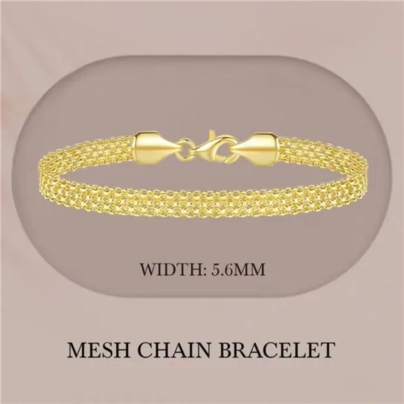 *【Sparkling Mesh Chain Design】Featuring a lobster clasp and a 5.6mm mesh link gold chain bracelet for women with precision diamond cut, these 14k gold рlаtеd bracelets for women exude timeless elegance. Whether worn alone for a chic statement or layered with other dainty gold bracelet stack, the womens gold bracelet are a must-have accessory, making it a staple for every woman´s collection.*【Versatile Wear】The gold bracelets’ classic yet modern design allows it to blend with various styles, from casual chic to elegant evening wear. The unisex appeal of the gold bracelets for mens bracelet makes it a fashionable choice, ensuring it becomes a staple in your gold jewelry rotation. Our gold bracelets will remain a beloved piece for years to come, suitable for all seasons and trends.DS-1165
