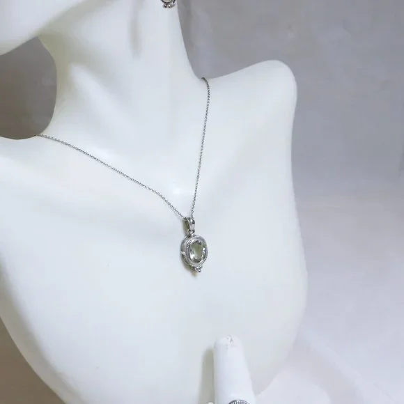 Elegant 6.75ctw Oval Aquamarine Ornate Sterling Silver 3 Piece Set NWT Necklace Length = 18"Necklace Weighs= 2.6Grams w/ 2.50ct Oval AquamarineRing Size = 7Ring Weighs = 4.1...
