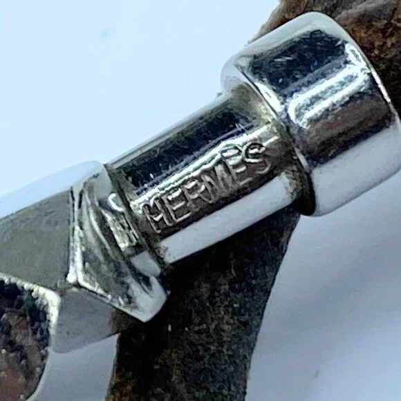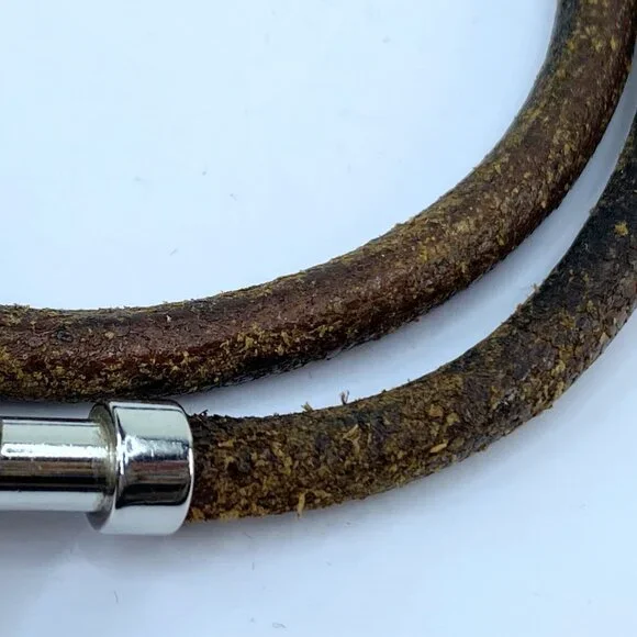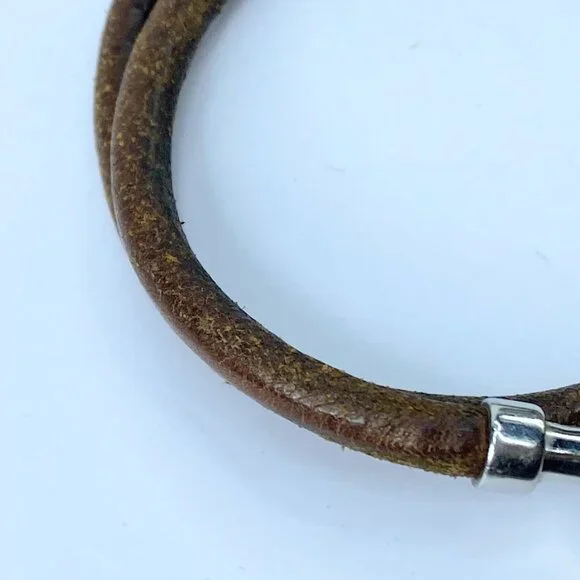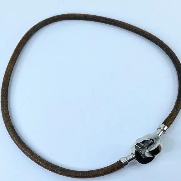Hermes menottes necklace in brown leather and silver metal.Length 16.5 inches, 5.0mmIt can be worn as a necklace or a double-wrap bracelet.Categories : WomenCategory:...