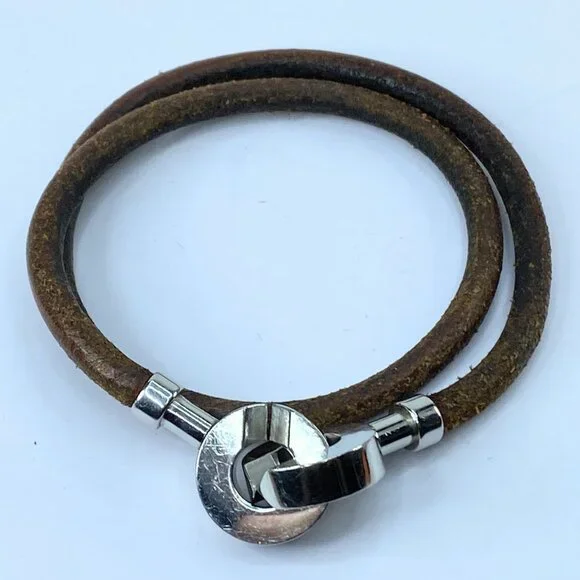 Hermes Leathers & Silver Metal necklace/double wrap bracelet GS494