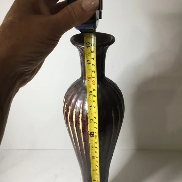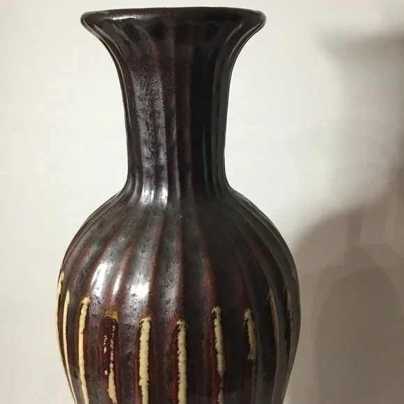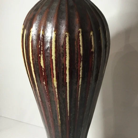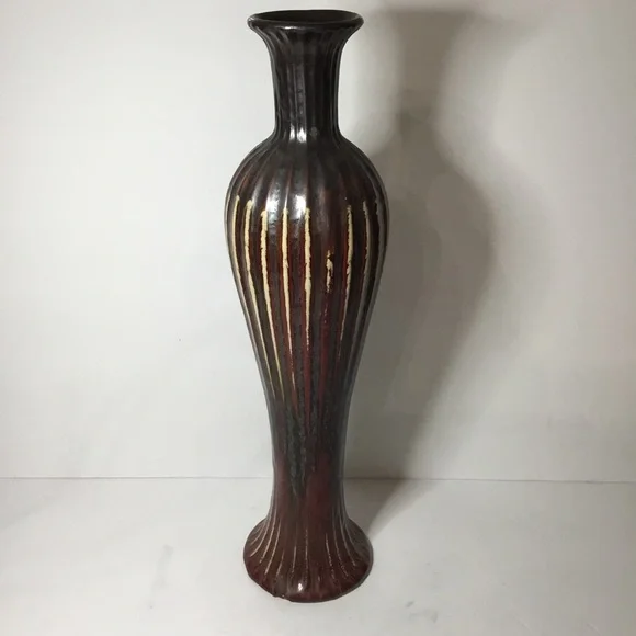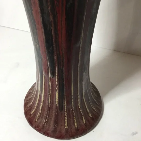 Vintage Signed Red And Brown Handmade Pottery Ceramic Vase 18” tall