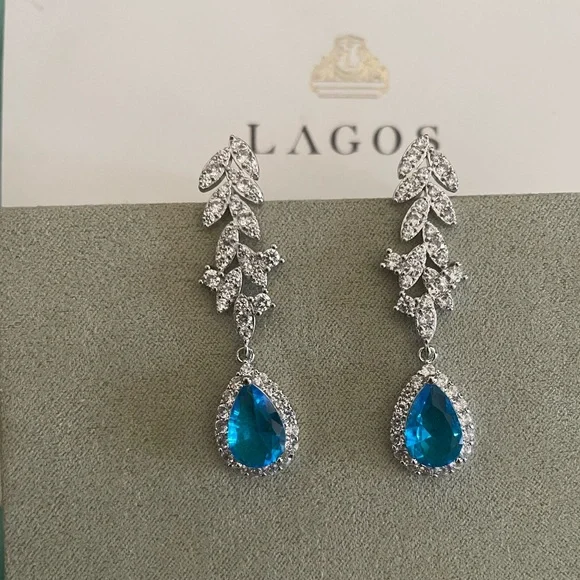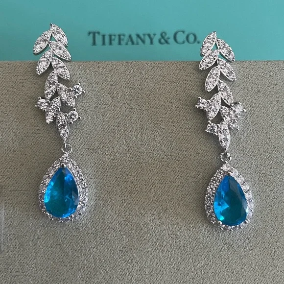 New!Stunning Vintage Vine Earrings.Beautiful Aquamarine Blue Radiance Stone Drop.Round Diamond Cut Crystal Vine.14k white gold finish, S 925High quality, no fade or tarnish.Richmond Jewellery Designs.Bloomingdale’s Retail:$799.00
