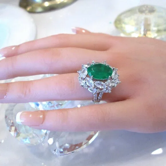 EMERALD LOVELY GREEN GEMSTONE OVAL CUT SIZE 7