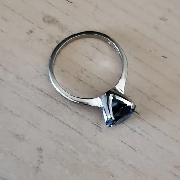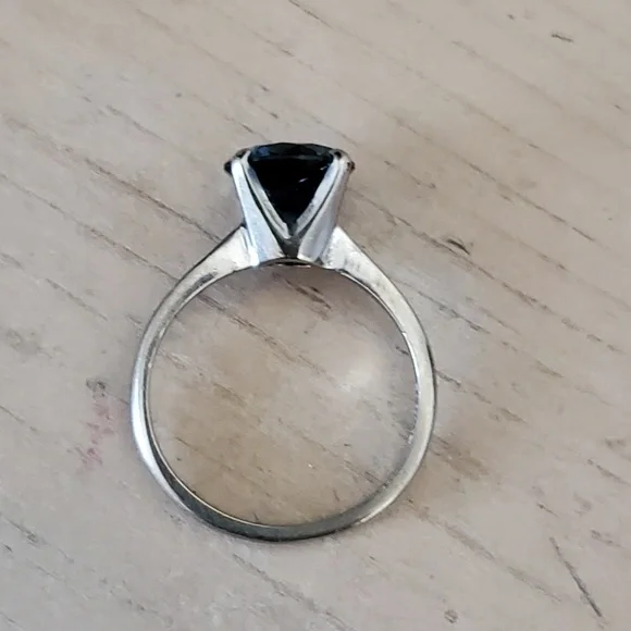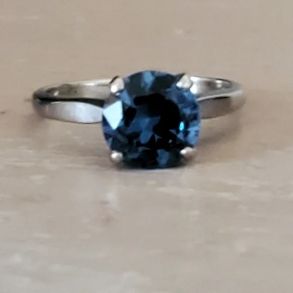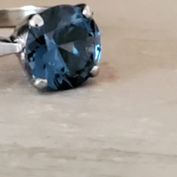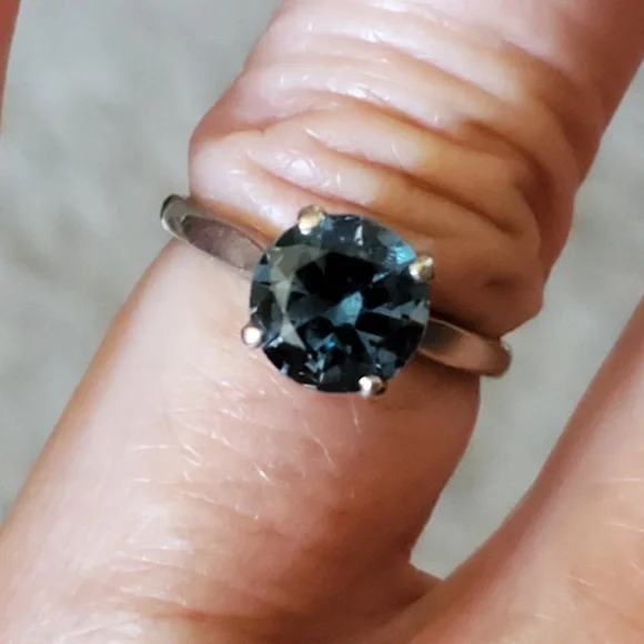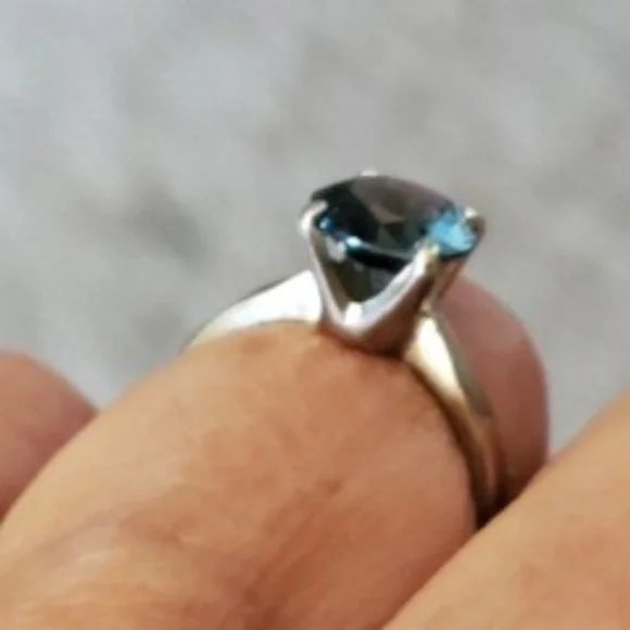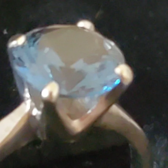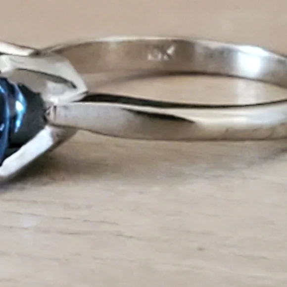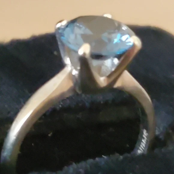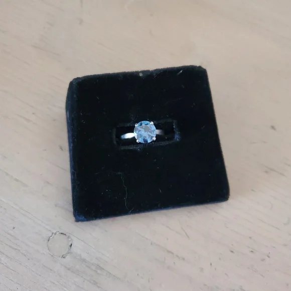 Vintage 10K White Gold Blue Topaz Solitaire Rings Ladies 5 3/4 By SPRING