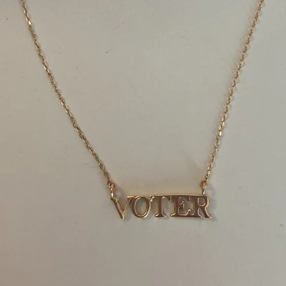 Sophie Ratner 14k yellow gold VOTER necklace