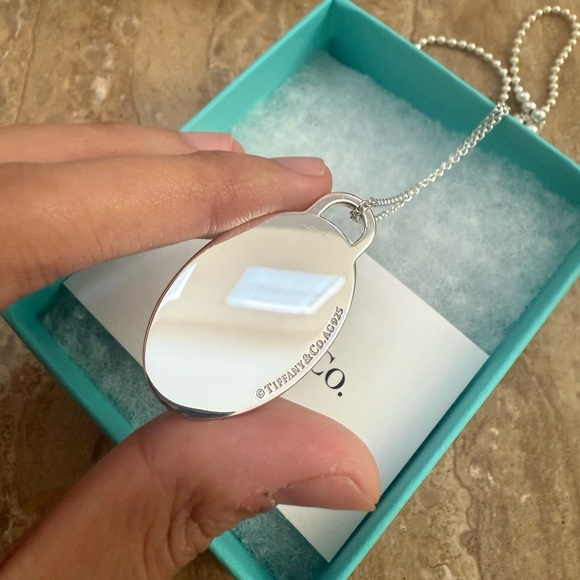 Authentic Tiffany and Co. New in box. Return To Tiffany & Co Sterling Silver Blue Splash Large Oval Chain Necklace 28" Pendant Height: 1 1/2" inPendant Width: 3/4" inChain Link...