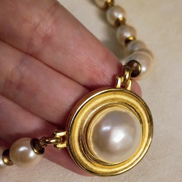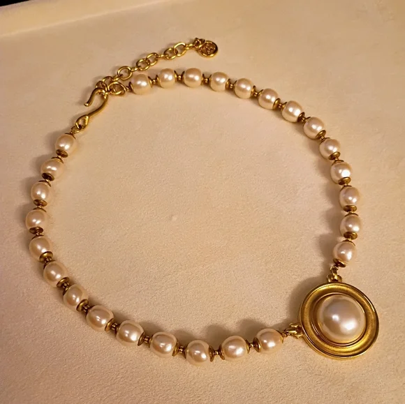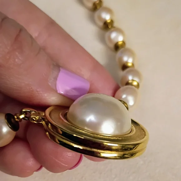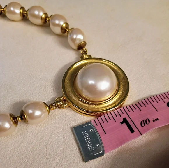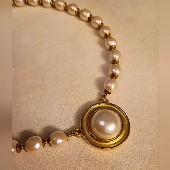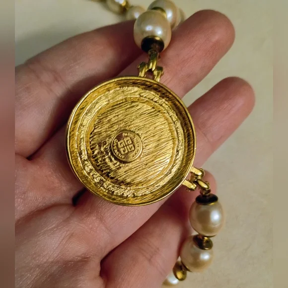 Givenchy Vintage Paris New York Faux Pearl Necklace Pendant