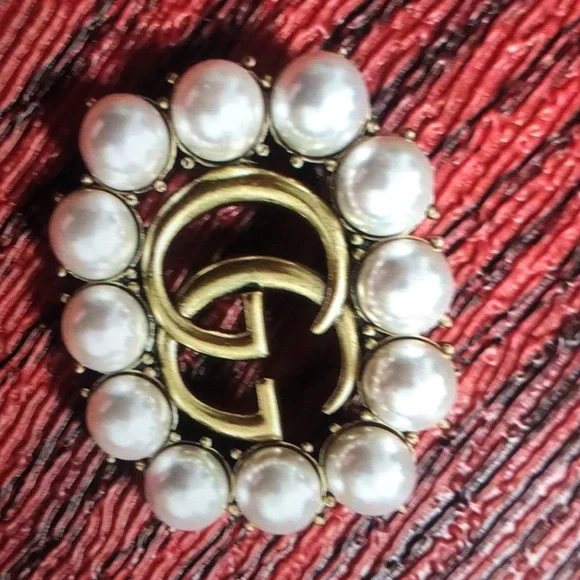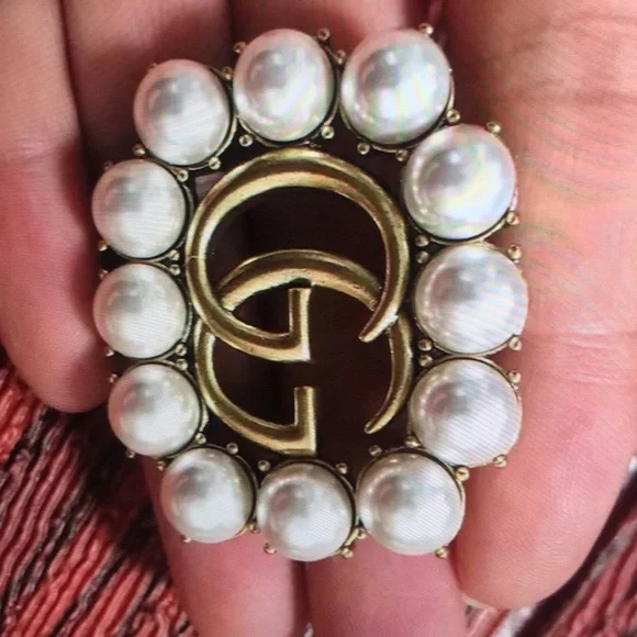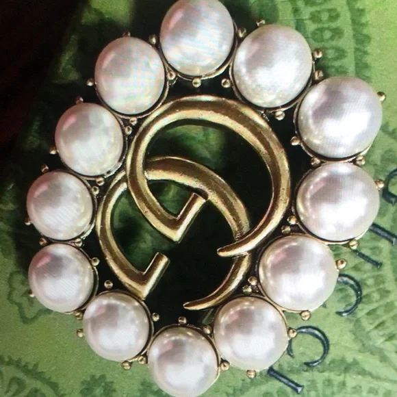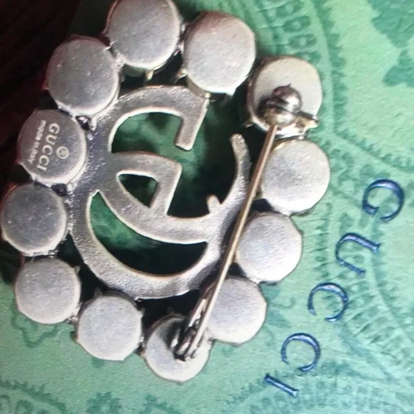 NWOT Aged Goldtone Metal Double GG Luxury Brooch