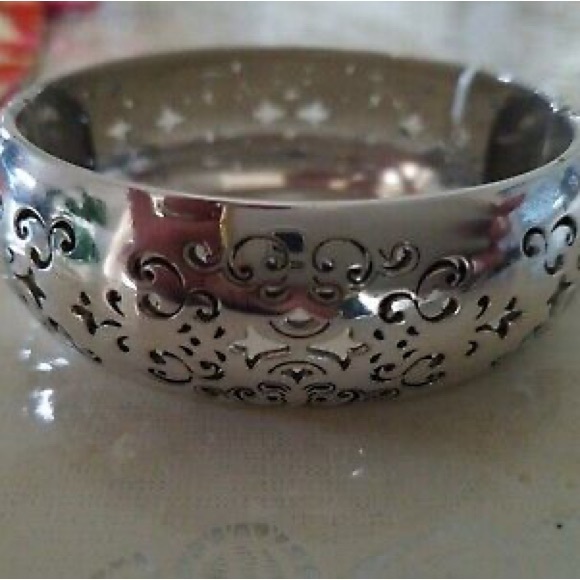 These 2 exquisite silver colored bracelets by Brighton feature intricate embossed designs that capture the essence of elegance and sophistication. This is a five piece lot gorgeous Brighton jewelry! The detailed patterns create a stunning visual effect, making them a perfect accessory for any occasion. Crafted with precision, these bracelets add a touch of timeless beauty to your collection.