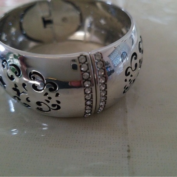 These 2 exquisite silver colored bracelets by Brighton feature intricate embossed designs that capture the essence of elegance and sophistication. This is a five piece lot...
