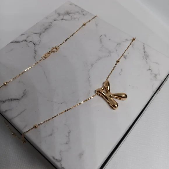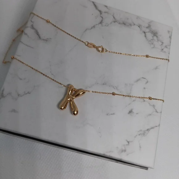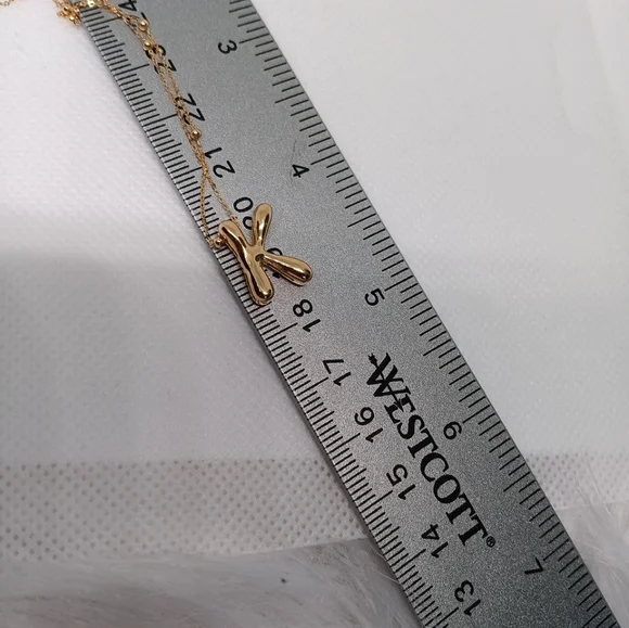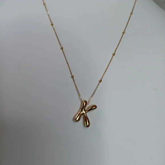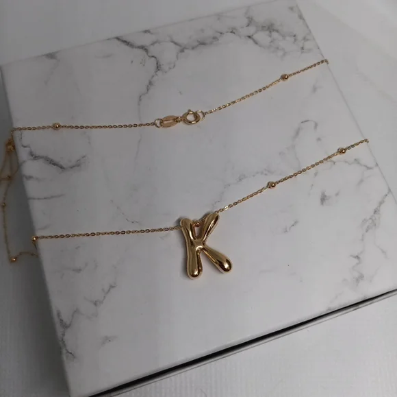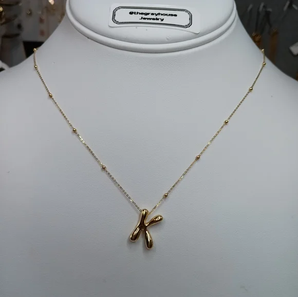 18K Bubble Letter Necklace Initial K Pendant Charm Bead Station Chain Size 17"