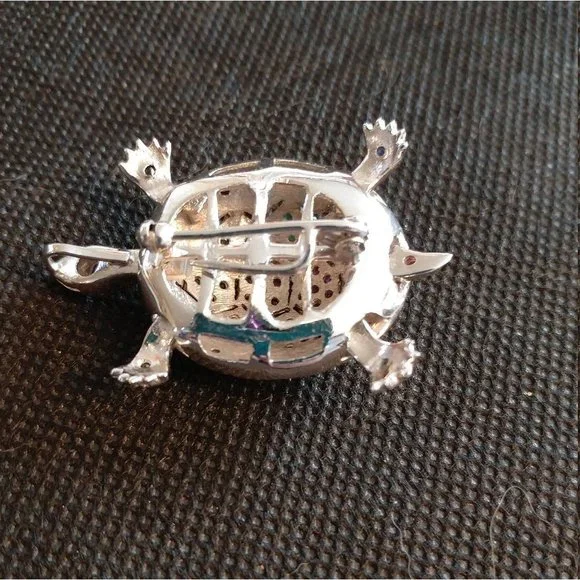 Silver Turtle pin Emerald, Ruby,and Sapphire