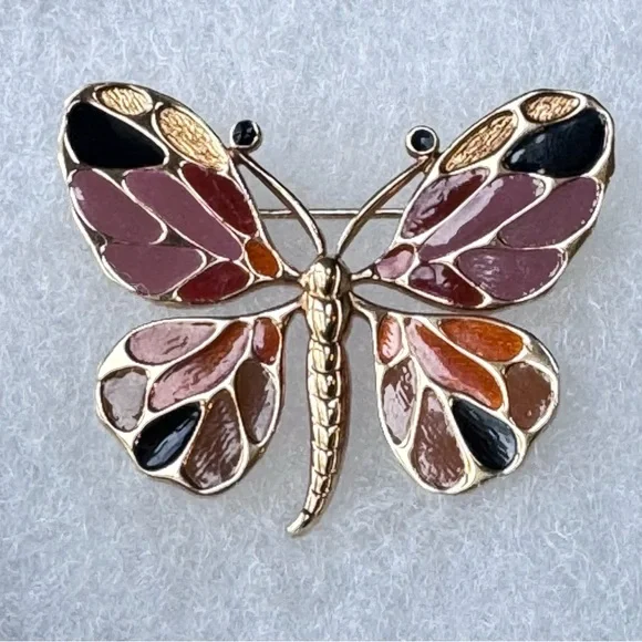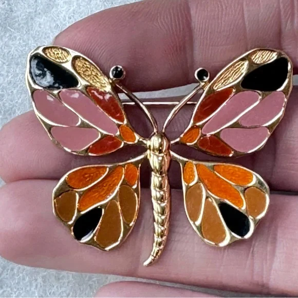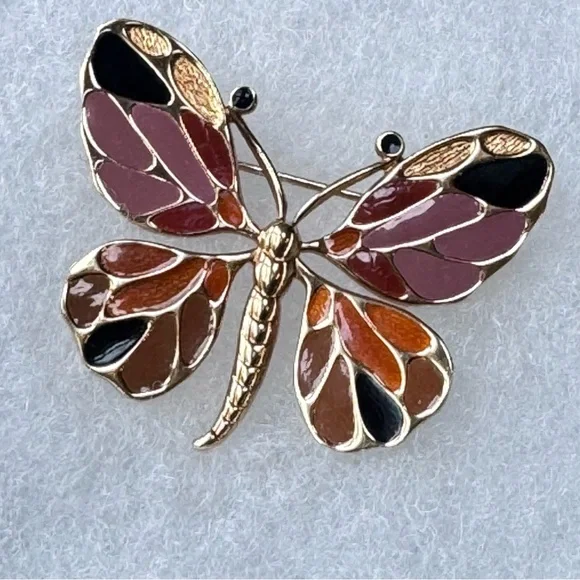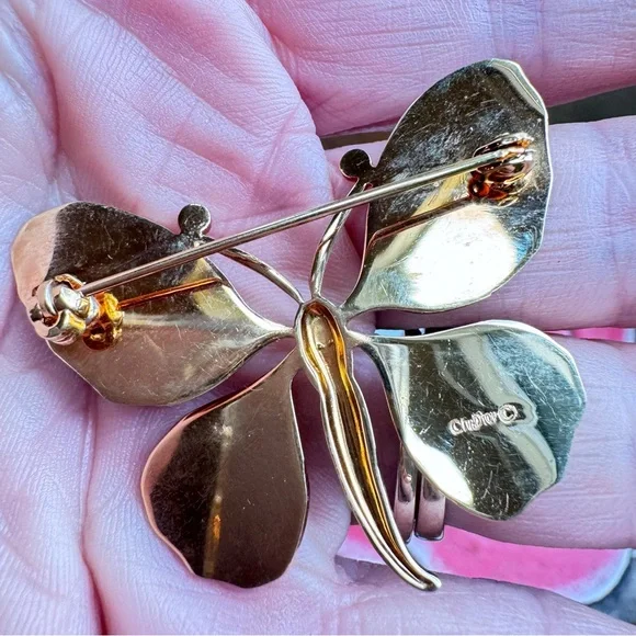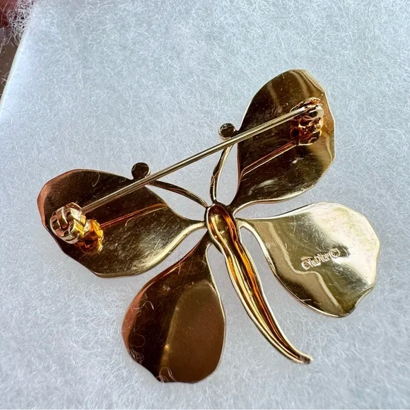 CHRISTIAN DIOR 1970s Germany, vintage gold enamel brooch, pin butterfly jewelry
