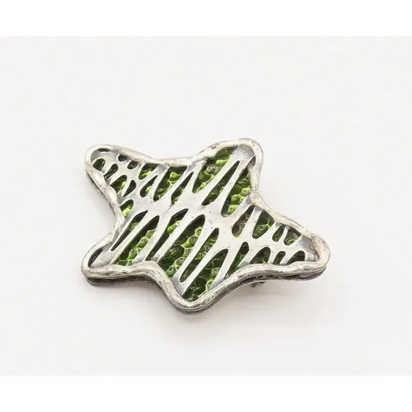 CORO 925 Silver Vintage Rare Openwork Zig Zag Enamel Star Brooch Pin BP10179