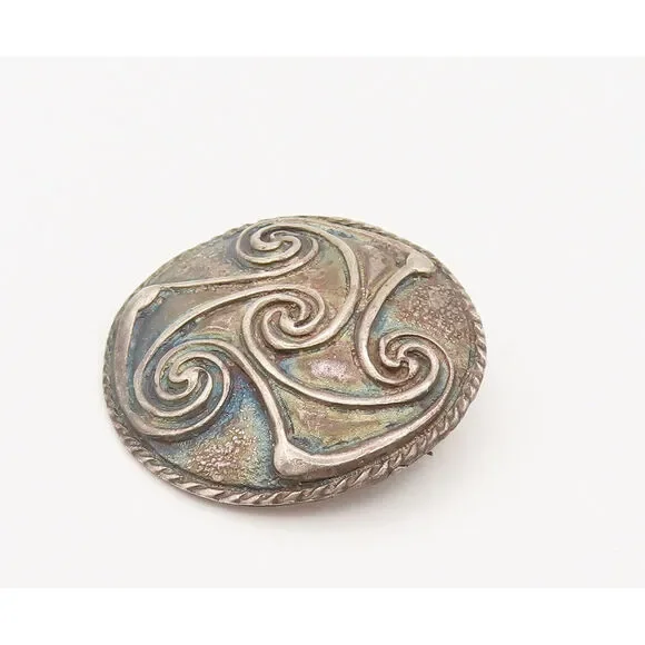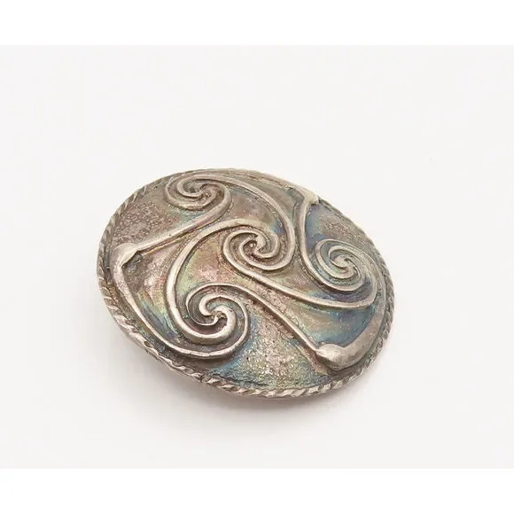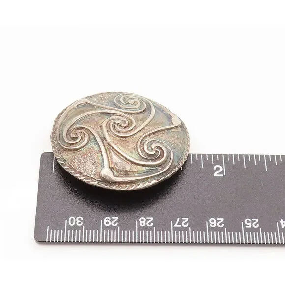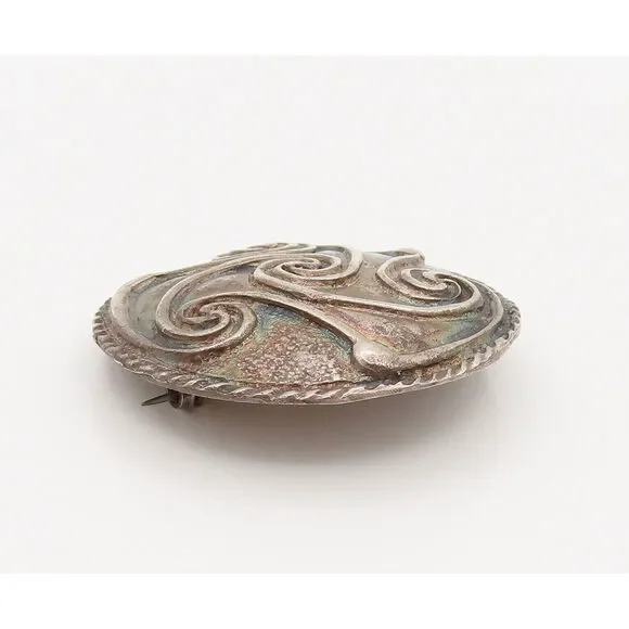 FRENCH QUARTER FESTIVAL 925 Silver Vintage Carved Spirals Brooch Pin BP10172