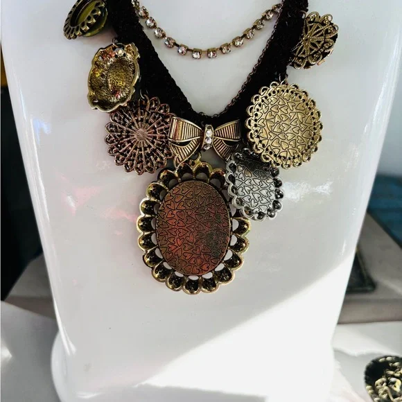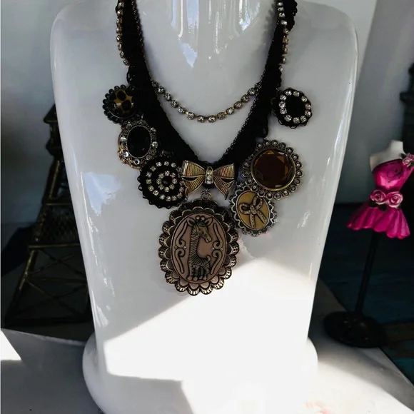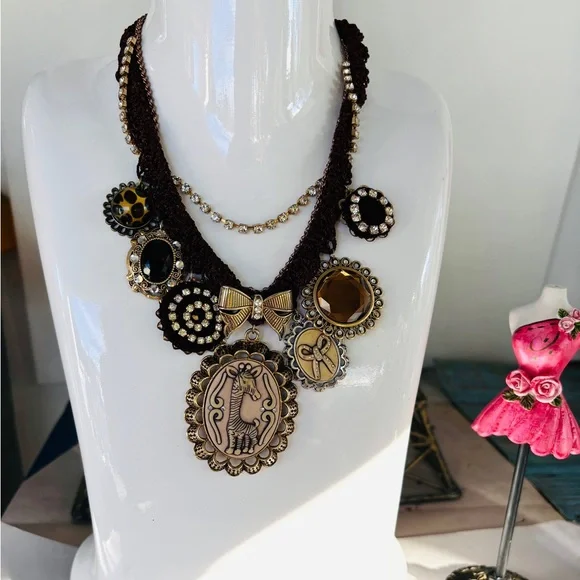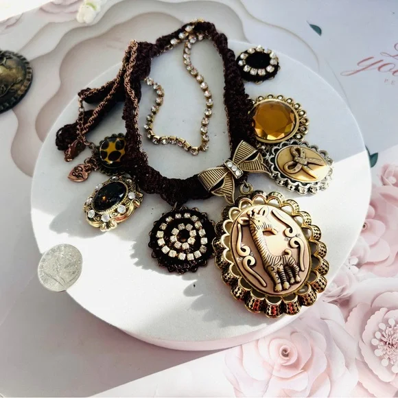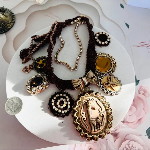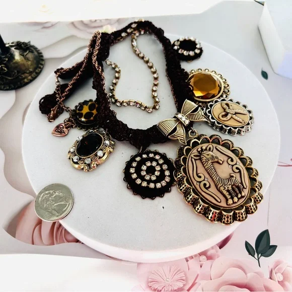 Betsey johnson Vintage Crystals Multi Strand Chains Iconic Charms Necklace