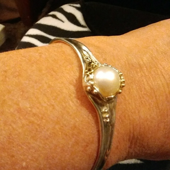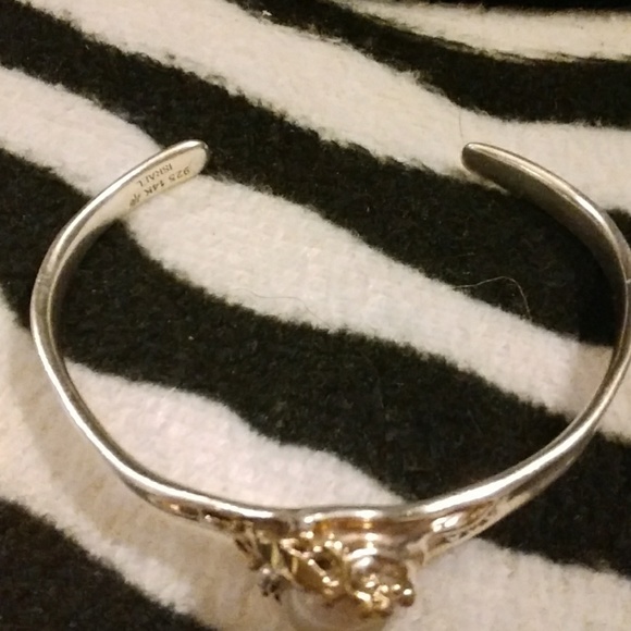 Unique piece this has been worn still in good shape 925 silver & 14 k gold beautiful pearl in center of 14 k gold
