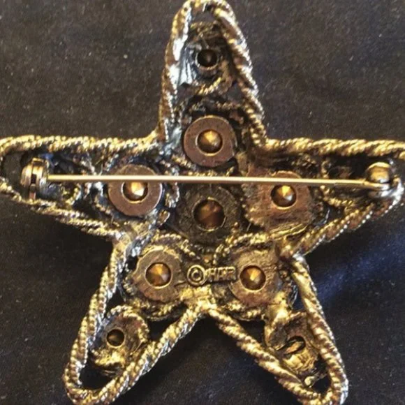 Fabulous HAR Signed STAR Shaped Peridot Green Brooch German 1950´sIt is signed HAR. It is done in a gold-Tone metal with a star-shaped design and is set with sparkling peridot green-colored rhinestones. Beautiful large brooch!!COLOR: Gold, GreenITEM TYPE: VintageI WILL WORK WITH YOU ALL ITEMS ALWAYS COME WITH A GIFT!!