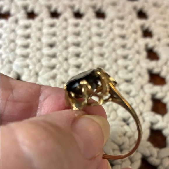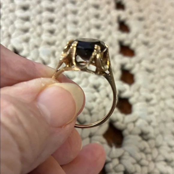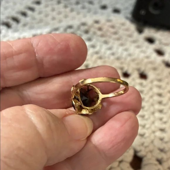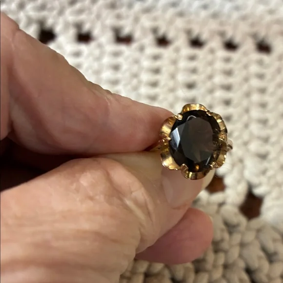 This is a 8 1/4 size smoky quartz ring. 9ct yellow gold ( ring was purchased in England which 9 ct is normal for Europe whereas in the US it’s 10kt)