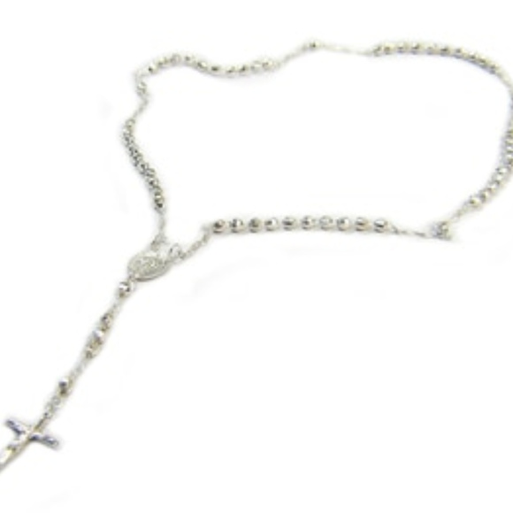 925 Sterling Silver Rosary Beaded Necklace Metal: 925 Sterling Silver Length: 26 inches Beads: 5 mm Brand new with box Note: Made in USA by hand. This item might take 2-5 days to...