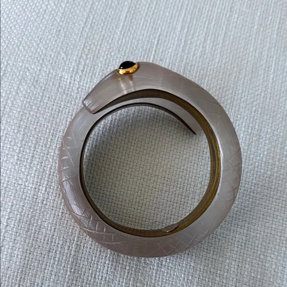 Alexis Bittar lucite snake bangle bracelet. Perfection condition, gorgeous statement piece. Smokey grey with black & gold jewel eyes