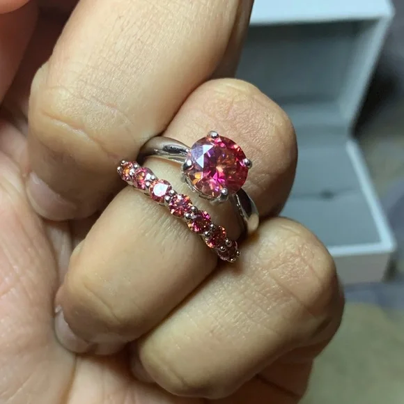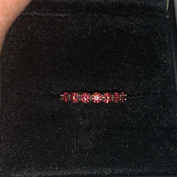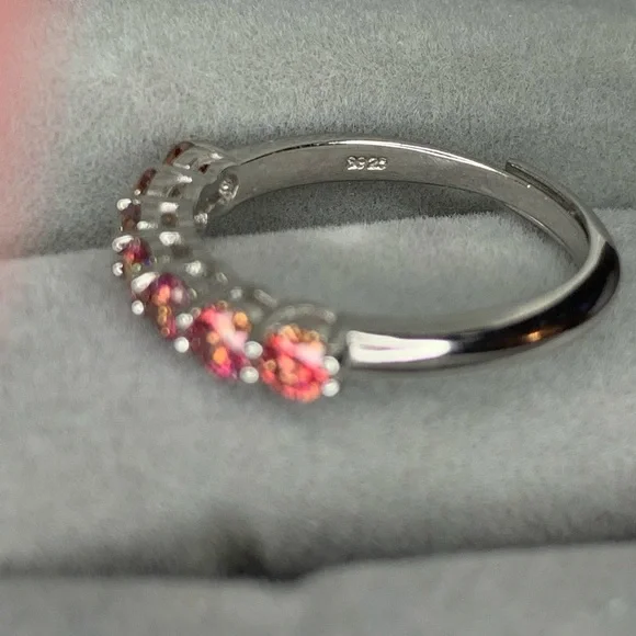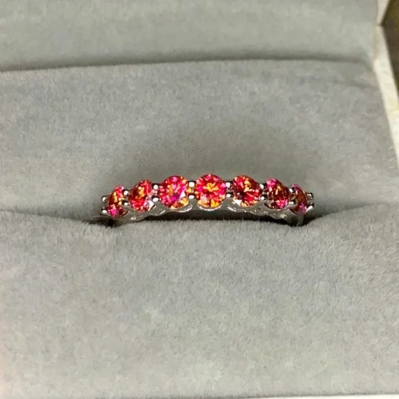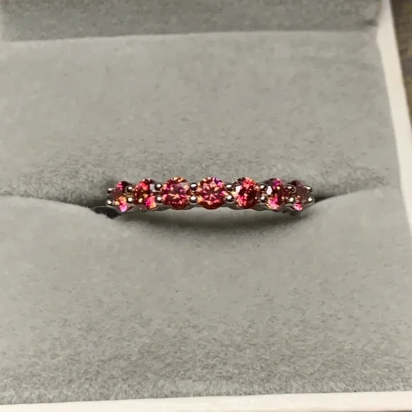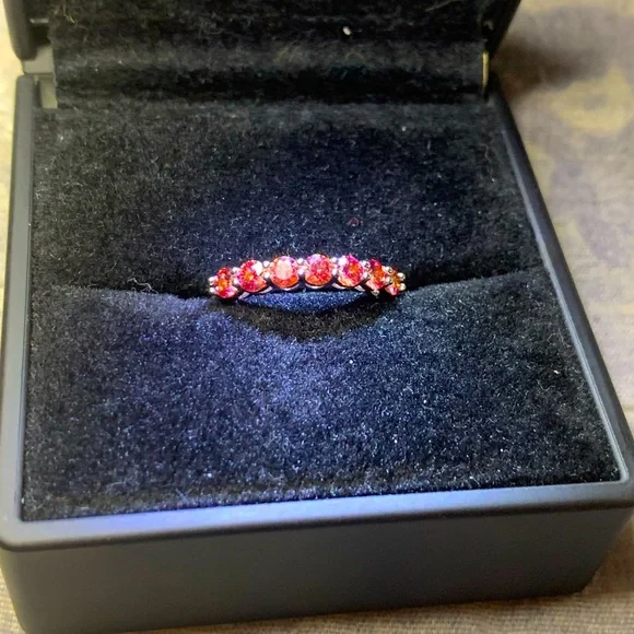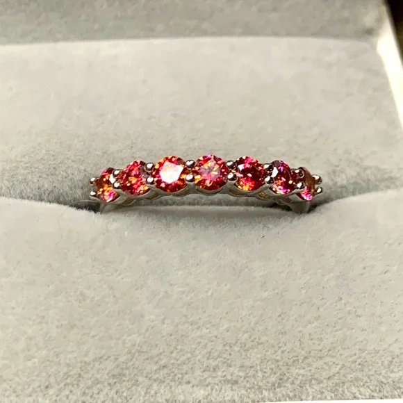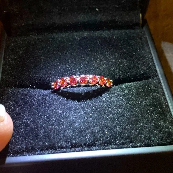 Small Natural Orange Moissanite Gemstone Fashion Simple Rings for Women Real 925 Sterling Silver Charm Fine Wedding JewelrySize: 7 (Resizable)Metal: Platinum Plated Over S925 Sterling silver Gemstones: Natural Orange Moissanite DiamondStone size: 3mm * 3mmTotal stones: 7 Carat weight: 1CT TWI have matching Solitaire Ring if you want to make it a ring set.Comes with 1 Certificate.Offers are welcome