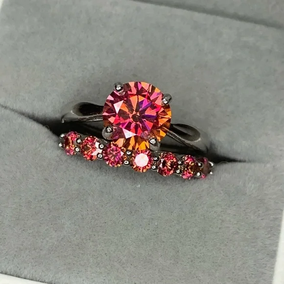 Certified, 1CT Natural Orange Moissanite Diamond Eternity Band ring