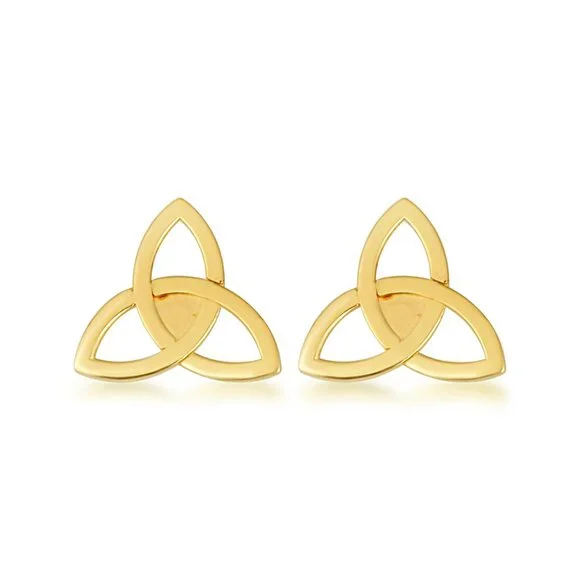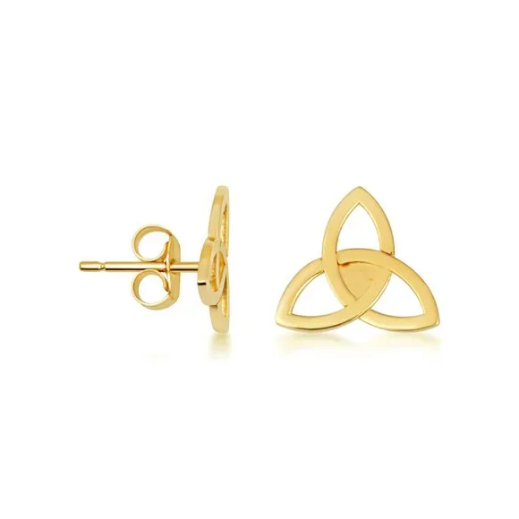 14K Solid Gold Small Celtic Trinity Knot Irish Stud Earrings