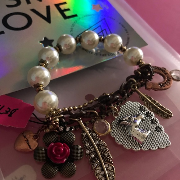 ORIGINAL BETSEY JOHNSON Chain charm BRACELET pink rose junk gypsy horse lucky fairy festival Doll babyPRE BANKRUPTCY COLLECTIONTEA PARTY SWEETIE PIE UNICORN PEGASUS PURSE Prom...