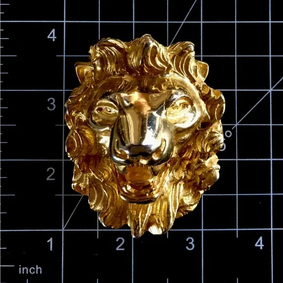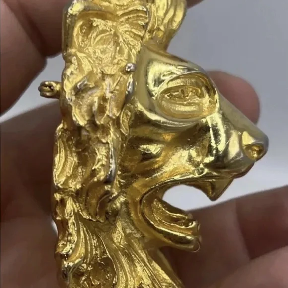 Designer Judith Leiber Lion HeadBrooch or PendantGold PlatedGreat Vintage Condition as seen in photosSigned Hallmarked on backClasp in Excellent Condition Beautiful Collectors PieceMeasures approx 2" Wide x 2.75” LongCarefully packaged and shipped out the same or next business day
