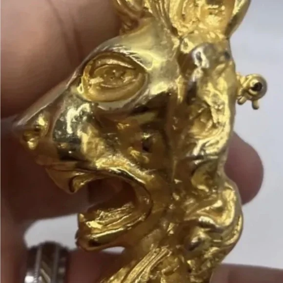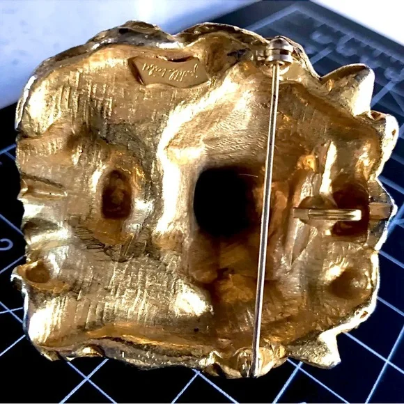 Signed JUDITH LEIBER Vintage Lion Head Brooch Pendant Gold Plated Great Cond