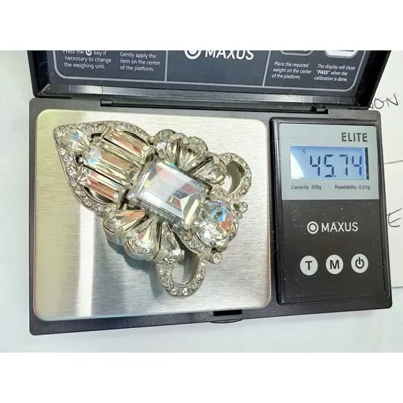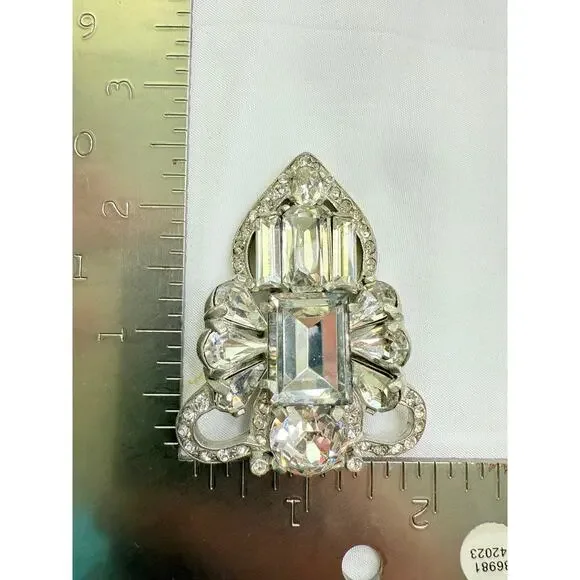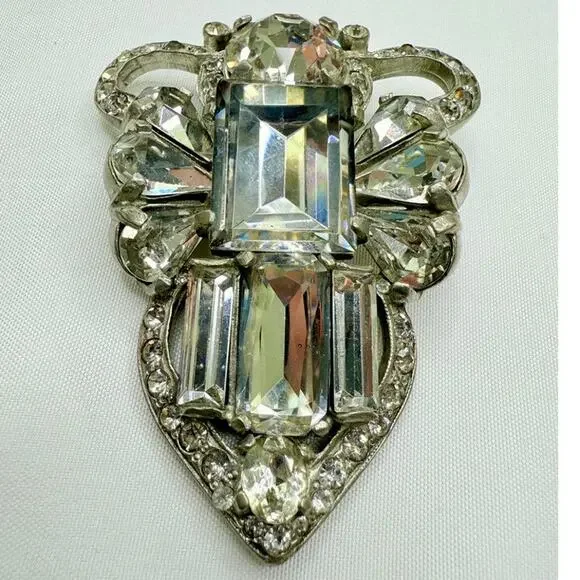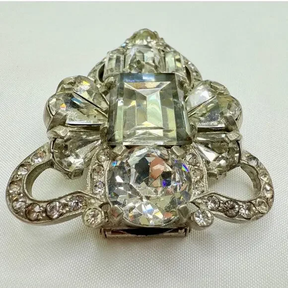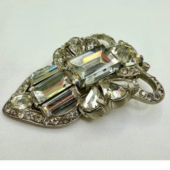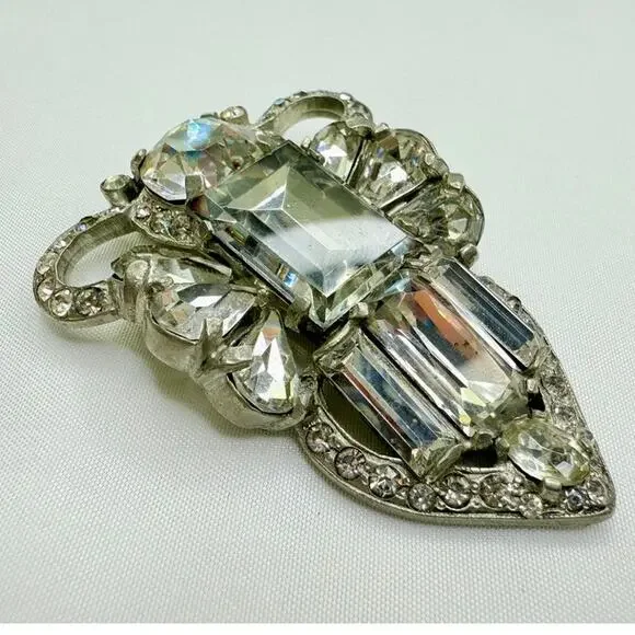 1940s Eisenberg Original Pot Metal Rhinestone Large Art Deco Dress Fur Clip