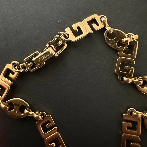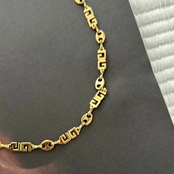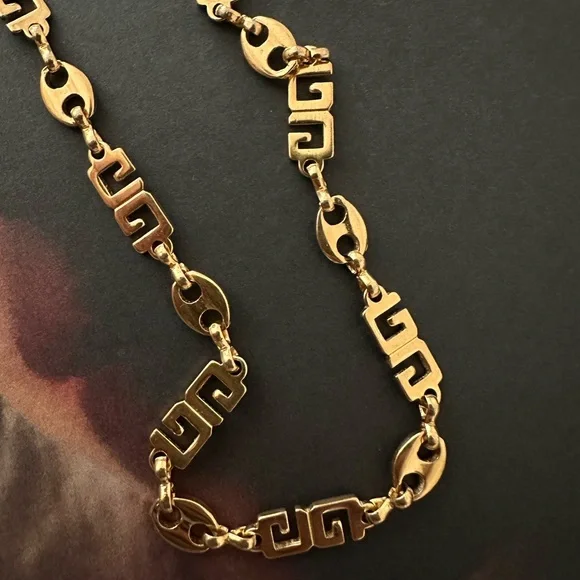 This stunning Givenchy Vintage GG Logo Classic necklace showcases a sophisticated link pattern of alternating oval and round links, crafted with a polished finish for a radiant...
