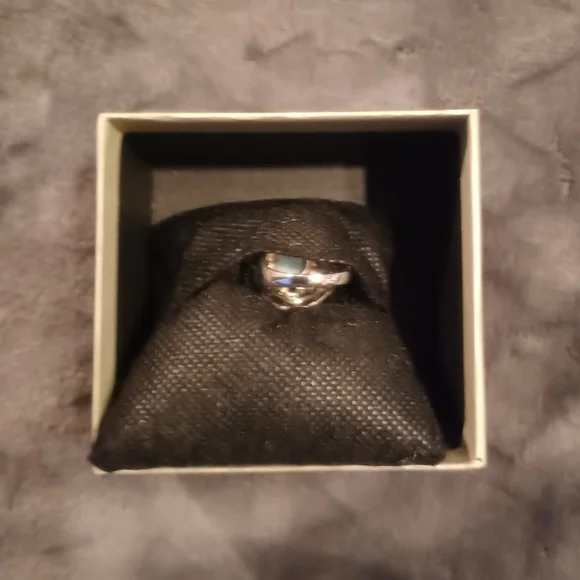 Larimar, Aquamarine & Blue Topaz ring. Size 7. There is a round larimar stone in the center. There are 8 round Aquamarine gemstones around the larimar stone. There are 8 heart...