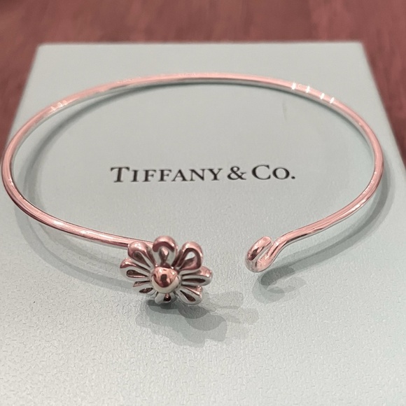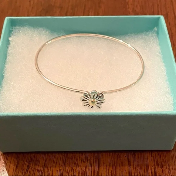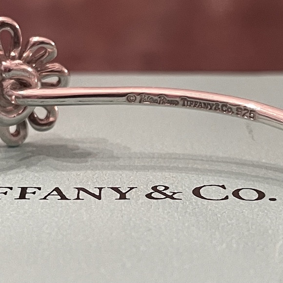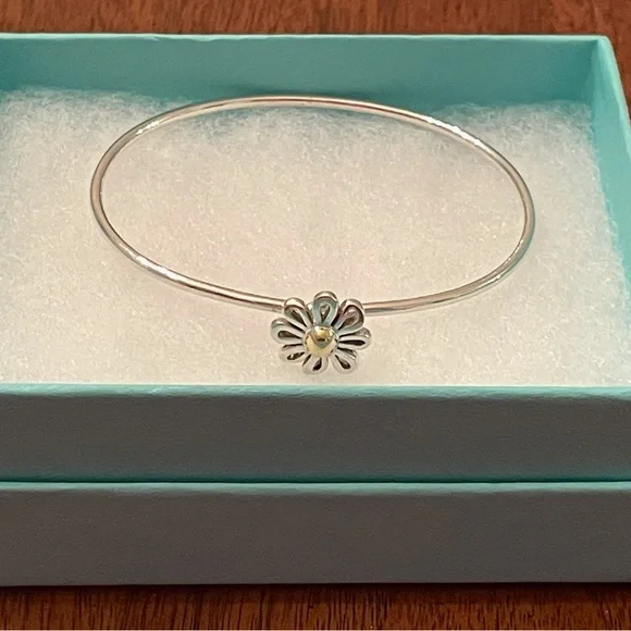 Tiffany & Co. Paloma Picasso 925 Sterling Silver Hook Bangle with Daisy Flower DecorationCenter of daisy is adorned with 18k gold for a beautiful contrast and elegant...