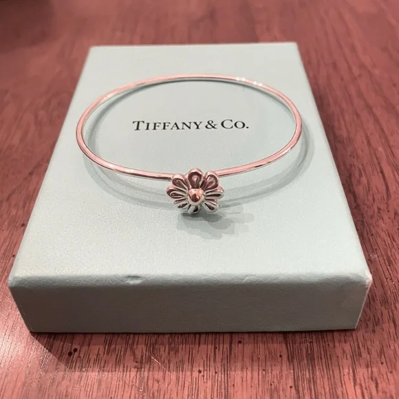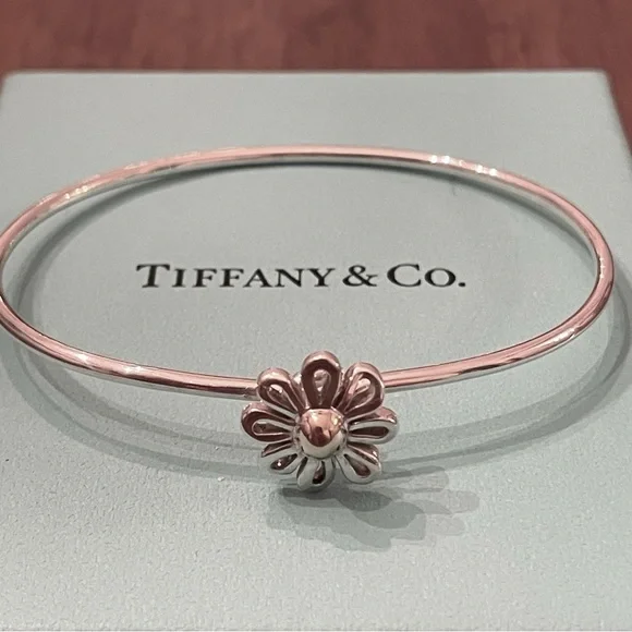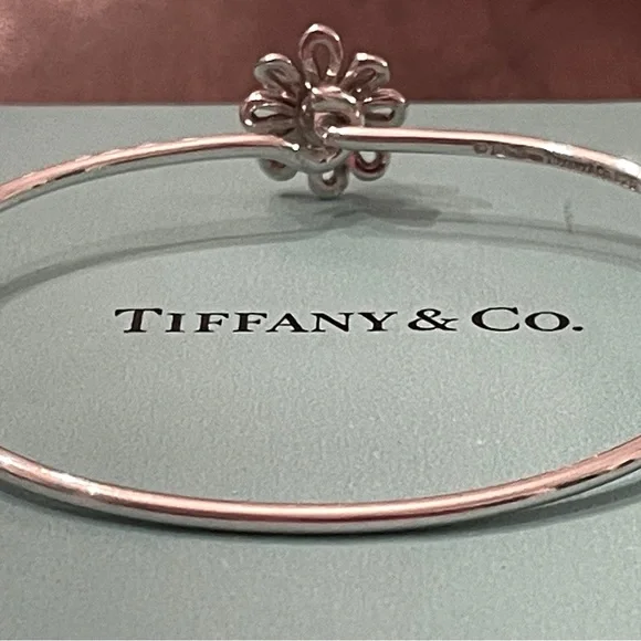 Tiffany & Co. Paloma Picasso 925 Sterling Silver Hook Bangle with Daisy Flower