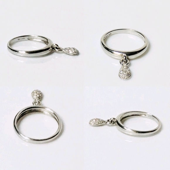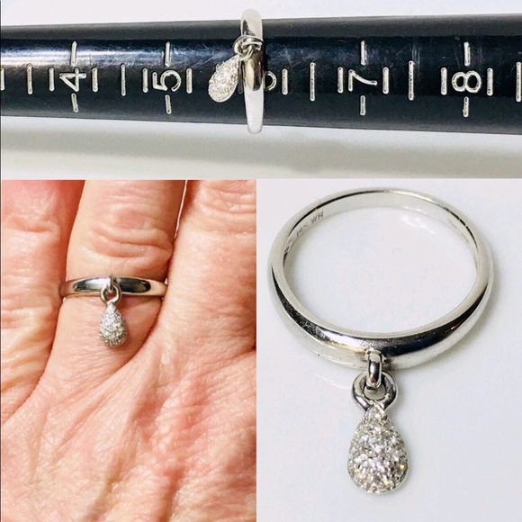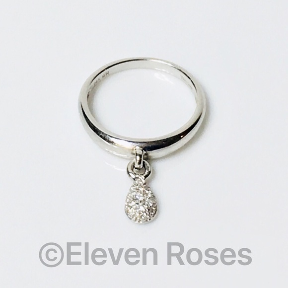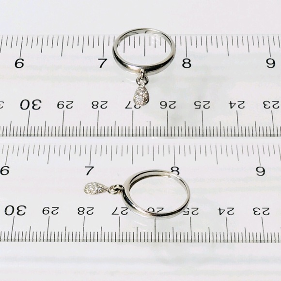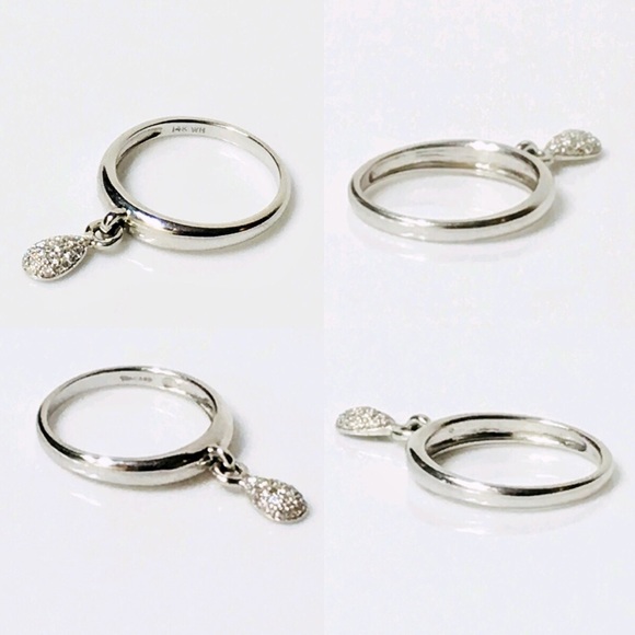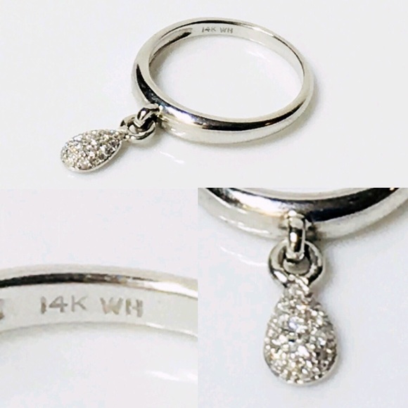 14k Gold Diamond Charm Dangle Ring - Solid 585 14kt White Gold - Pave Diamond Dangle Charm - US Size 6 - New Without Tags - Listing Images Are Of The Actual Item Being Offered.