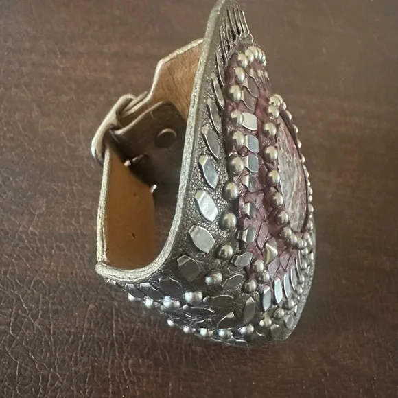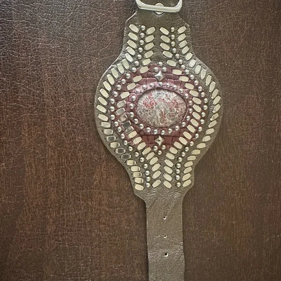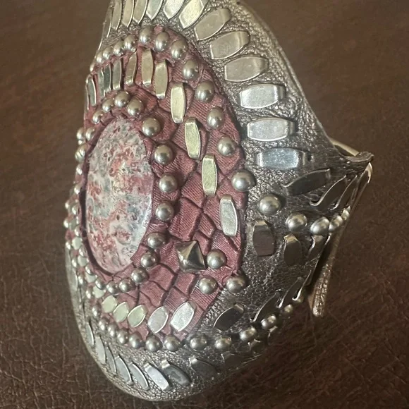 Caller CORDERO Silver and Pink Semi Precious stone Leather Studded Bracelet