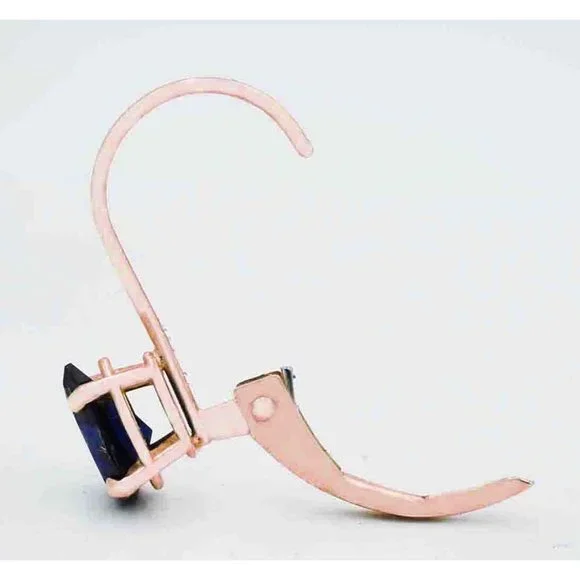 Metal Purity: 14KRose GoldCondition: New With tagGems: 2 genuine blue sapphiresTotal ct weight : 1.42 caratsBlue sapphire grades,Hue . . . blueTone . . . medium darkSaturation . . . vividCut . . . very goodNo inclusions or flawsShape: PearDimensions: 6 mm x 4 mm each gemstone measurements // 15 mm (0.59") high