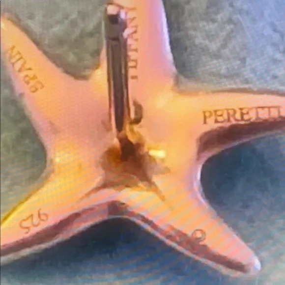 These charming sterling Tiffany & Co. starfish studs pre owned great condition /are perfect for anyone who adores the sea. They are designed by Elsa Peretti who is renowned for her organic and sculptural look. There is a light patina on the earrings which could either be embraced or cleaned for a brighter appearance. They will make you smile.The sterling silver studs weigh 0.12 ounces and measure 16mm at their widest point and 14.8mm at the narrowest point of the starfish. These earrings are designed to have a three dimensional look with a flat back and a sculptural top ranging between 1.6mm and 3.3mm. The back of each starfish is stamped "SPAIN TIFFANY & Co. © 925 PERETTI" on one of the five points. Each earring comes with a secure friction back. Stamped t&coComes with box pouch, ribbon care of sterling instructions.Please check out my other luxury items offers are always welcome.Customer clean smoke free home.Thanks again.CATEGORYWomenJewelryEarrings