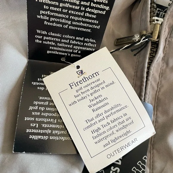NWT Firethorn Disney Golf Taupe XL Windbreaker Jacket w/Logo & detachable sleeve